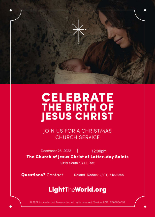 Our stake and ward leaders have asked everyone to invite at least one visitor to attend our special Sacrament Meeting this Christmas Day. This meeting will be a musical celebration of the Savior’s birth and will be exceptionally friendly for non-members and less active members.