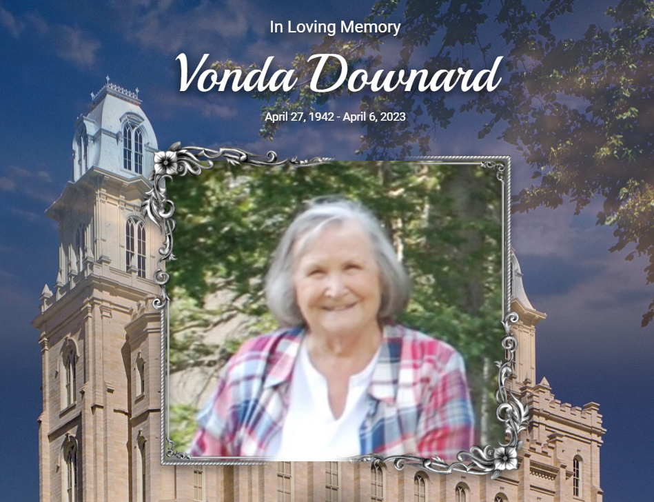 We join with the Downard family in mourning the loss of our neighbor and friend, Vonda. Her funeral will be held as follows:
