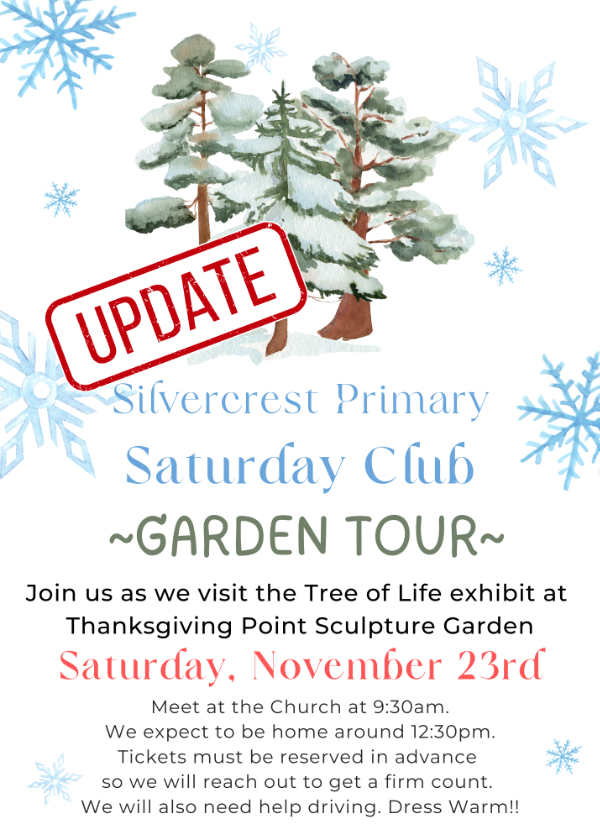 Another wonderful activity for the neighborhood children is coming in November! Everyone is invited to visit the Tree of Life Exhibit. Tickets are required in advance and the Primary Leaders will follow up.